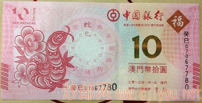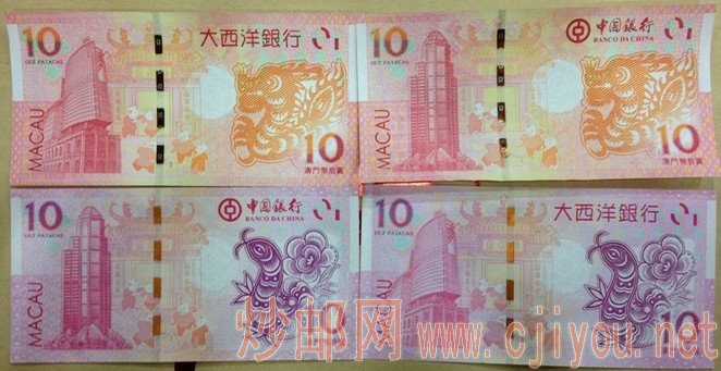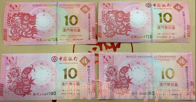 澳门龙钞蛇钞对比图,生肖钞,贺岁钞