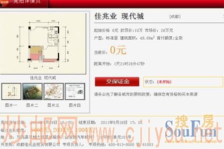 作为成都“搜房拍”的第一个响应项目,四川成都佳兆业现代城携旗下精装楼盘新双楠50平方精装房拍卖价10万封顶,无底价起拍,超低封顶价格,房价优惠高达3.8折,不仅仅在成都创下了历史最高优惠记录,也是截止目前,搜房314城联动“搜房拍”活动所有房源的优惠NO.1。