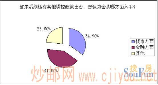 上海搜房网最新调查显示:41.5%的网友认为如果还有后续楼市政策出台,会是在金融政策方面;34.9%的我网友认为会出台楼市方面新政;还有23.6%的网友认为政府或许会出台其他调控政策。