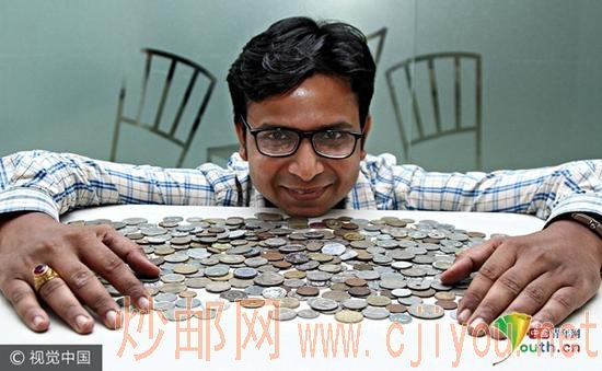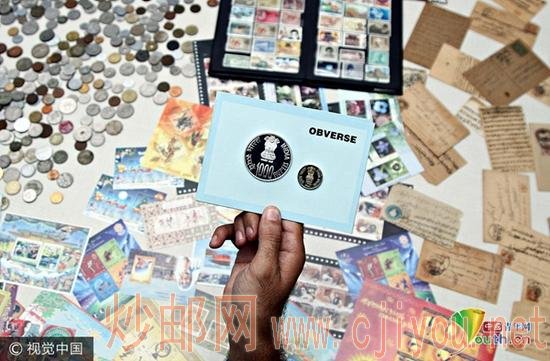 当地时间2017年9月11日,印度新德里,印度男子Vivek Kumar是一名疯狂的集邮家和古董收藏家,至今,他已经收集了来自100个国家的硬币、邮票和纸钞。