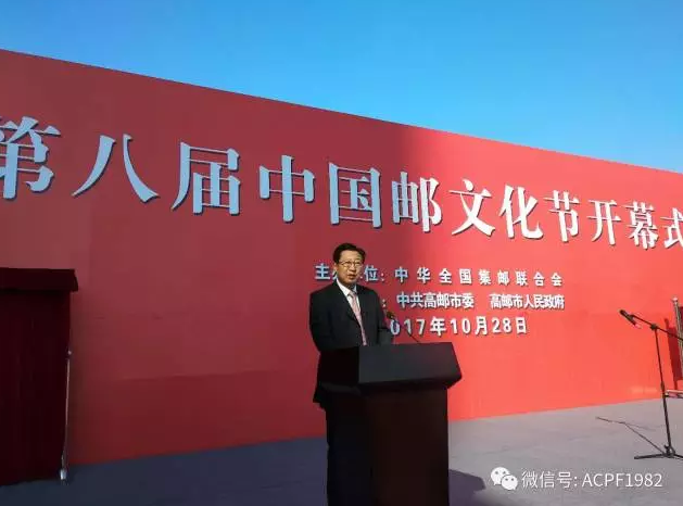 高邮市委书记勾凤诚在致辞中指出高邮因邮得名,因邮而兴,为做大邮文化,做亮邮名片,高邮始终坚持以邮会友,以邮兴邮。