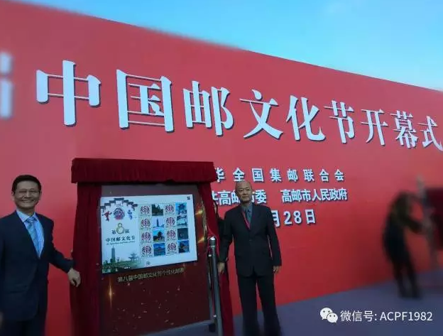(中国邮政文史中心副主任吕兴华、江苏省集邮协会会长王曙东为第八届中国邮文化节个性化邮票揭幕)