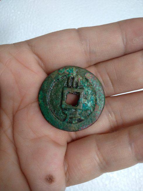 品泉阁主今天向大家展示这枚如皋陈建平家藏的大顺通宝背川户厚版钱币,直径28mm,重12克。正面,红斑入骨,边缘黑锈重重,绿锈点缀其间,楷书钱文大顺通宝四字直读;背面,绿锈厚重,红斑黑锈点缀其间,幽古之风扑面而来。看钱文,背面上川下户,串口可见明显使用痕迹。