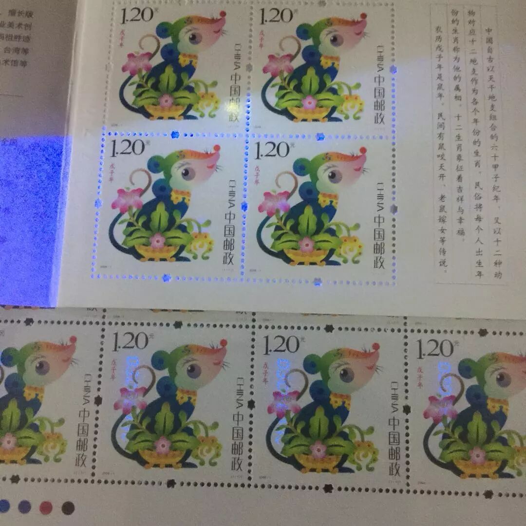 在紫光灯下可以立即分辨出来。
