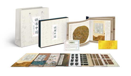 据了解,《诗书中国》邮票珍藏册完整收录中国邮政发行的9版诗书系列小版票,包含多媒体邮票《唐诗三百首》《宋词》《元曲》《诗经》小版票,《篆书》《隶书》《楷书》《行书》《草书》小版票,《行书》《草书》均为宣纸材质。