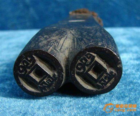这个怪怪的雕母是用高档木材做成的,这就是华夏收藏网拍卖的雕母钱。而且我认为这就是私铸所用的种母钱。我还看到一个类似的雕母,是牛角雕,你看到文字的方向了吗。它的压印是充分利用上一排和下一排的空间。它的样钱当然是朝廷发行的钱币。私铸,做出这样的“钱印”造万枚钱币的模板还是可以的。 清朝的钱币铸造工艺,就是在模板上压印。