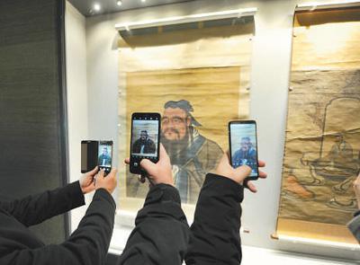 观众纷纷拿出手机拍摄孔子画像 (人民视觉 杨国庆摄)