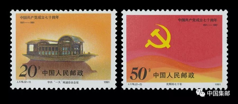 而1991年发行的“J.178 中国共产党成立七十周年”纪念邮票,则是第一次把“南湖红船”搬上了邮票方寸。