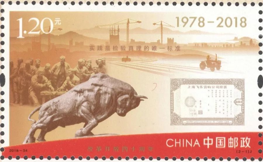 中国邮政定于2018年12月18日发行《改革开放四十周年》纪念邮票1套2枚,小型张1枚。邮票图案名称分别为高举旗帜、伟大实践,小型张图案名称为筑梦新时代,全套邮票面值8.40元。