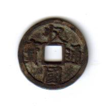 或为最早采用宋体字入钱文的钱币铸母。似应为北周宇文邕(561-565)试铸品。嗣后朝代可见零星同类品。