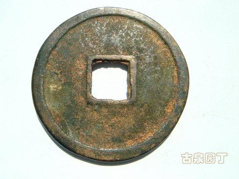 这两枚钱币等大。但是文字稍有不同,总体上,第一枚的笔划粗一点。区别最明显的是金字,第一枚两点近乎为 横 ,第二枚比较标准了。国字,第一枚国字很阔,第二枚笔划瘦一点。