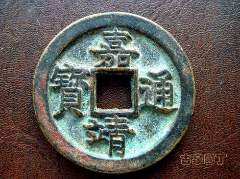 明世宗嘉靖年间(1527~1566年)铸,小平钱居多,另有仿洪武通宝记重系列套钱,罕见。