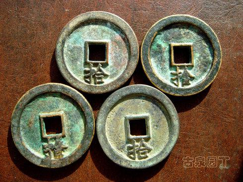 折十母钱背拾和折十大钱光背,正面文字比较。