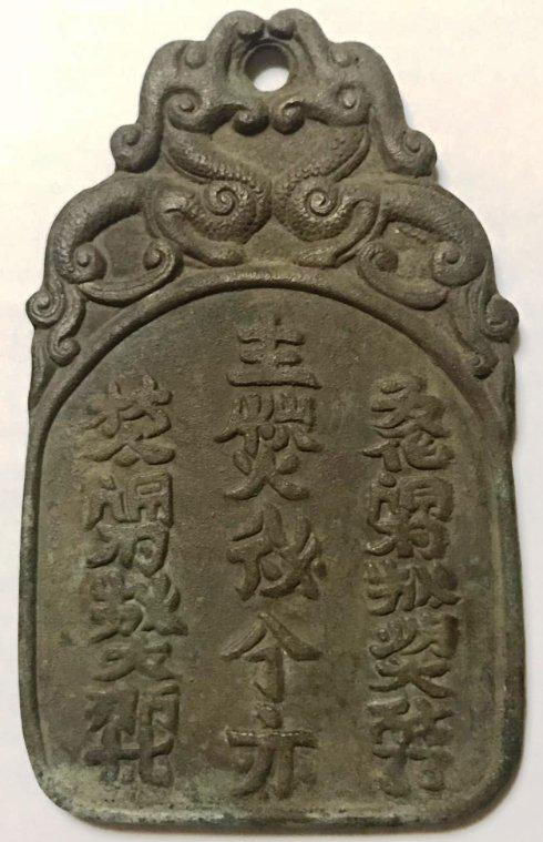 通过两牌契丹文的对比,两牌的真假立现。符牌,作为朝廷的权力象征,它是不允许牌文有任何歧义的。墓志铭,哀册文,器物铭文,都可能并允许有错必改。唯独符牌、印玺不允许有错别字,将圣意歧解。金牌文字清晰准确,官称、动词表达无误,应是当时契丹人写的契丹文真符牌。反观铜牌,锈无层次,包浆昏暗。纹饰形制虽摹仿形似,但了无生气。牌文左侧文字五个字竟写错两个。更可笑的是造假者不懂文意,把记某官员履历的祭祀牌当作朝廷军队传达命令的“令牌”,自作聪明地在牌背加镌了个画蛇添足的汉字“令”字。种种低劣笨拙的“马脚”,足证铜记某官员履历的祭祀牌是仿金牌而作的低档假货。