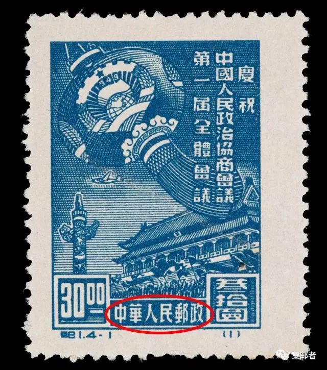 1949年10月1日,中华人民共和国宣告成立后,邮票统一采用“中华人民邮政”铭记。