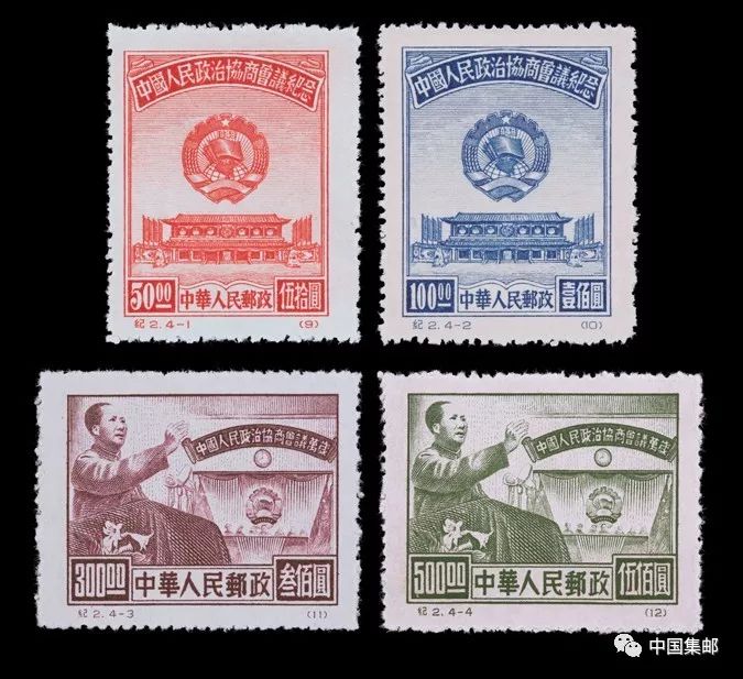 发行于1950年的“纪2 中国人民政治协商会议纪念”邮票,是新中国发行的第二套邮票,也是新中国发行的第一套雕刻版邮票。该套邮票全套4枚,共有两个画面,分别是“北京新华门及政协会徽”和“毛主席像及政协会场”。让我们通过邮票的大图,共同来欣赏一下。
