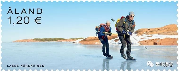 2019年3月8日,奥兰群岛发行一枚今年的北欧系列邮票,主题为滑冰运动。这枚邮票选用摄影师Lasse Kärkkäinen所拍摄的照片,照片上的两位滑冰者在拍摄当天滑行了106公里。