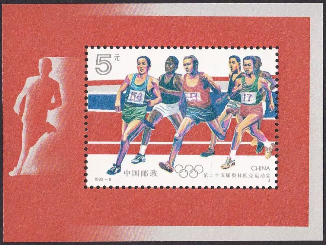 这个设计,让我想到了小学时候的绘画比赛,人物高度脸谱化,毫无层次感。另外,邮票上的一个个人物,明显假笑,尤其是这种高强度运动,我实在不能脑补,在濒临虚脱的边沿,还笑得出来,不科学呀。无力吐槽。真正的好设计,我已经帮大家找好了,就是1992年奥运会小型张,可以对比对比,优劣一目了然。