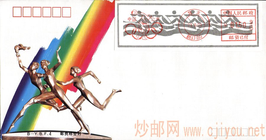 北京“2000年奥运会主办城市揭晓”邮资标签封 日期:2010-04-13 北京“2000年奥运会主办城市揭晓”邮资标签封,1993年9月23日启用首日加盖,全新。戳图为奥运五环标志和“掷铁饼者雕塑”,该封是记录首次申奥历史的难得邮品,由于标签封使用了五环标志,以及北京申奥失败等原因,该封流出数量比较少,是奥运题材的上佳邮品之一,很难得