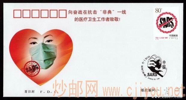 红非典首日封(应为赈灾或医务人员专用纪念封): | |