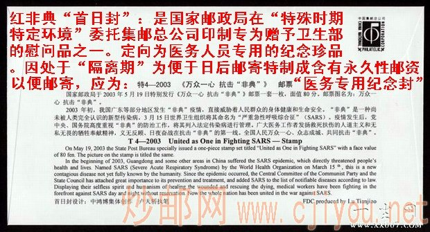 红非典首日封(应为赈灾或医务人员专用纪念封): | |