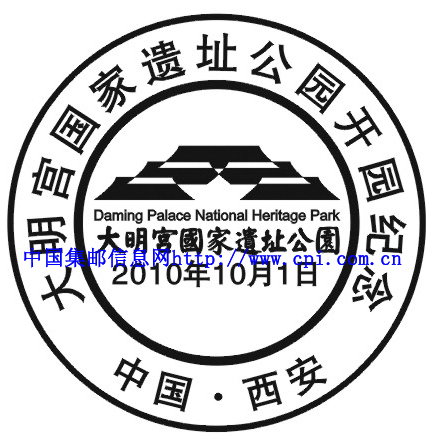 作为盛唐文化的载体,大明宫国家遗址公园也在10月1日盛大开园,迎接国内外的游客了。唐大明宫是东方园林建筑艺术的杰出代表,被誉为丝绸之路的东方圣殿。唐大明宫是举世闻名的唐长安城“三大内”(太极宫、大明宫、兴庆宫)中最为辉煌壮丽的建筑群,地处长安城北部禁苑中的龙首塬上,建于唐太宗贞观八年,平面略呈梯形,占地面积约3.2平方公里。原宫墙周长为7.6公里,四面共有11座门,已探明的殿台楼亭等遗址有 40余处。为纪念这一盛事,西安邮政当天启用“大明宫国家遗址公园开园纪念”纪念邮戳一枚。