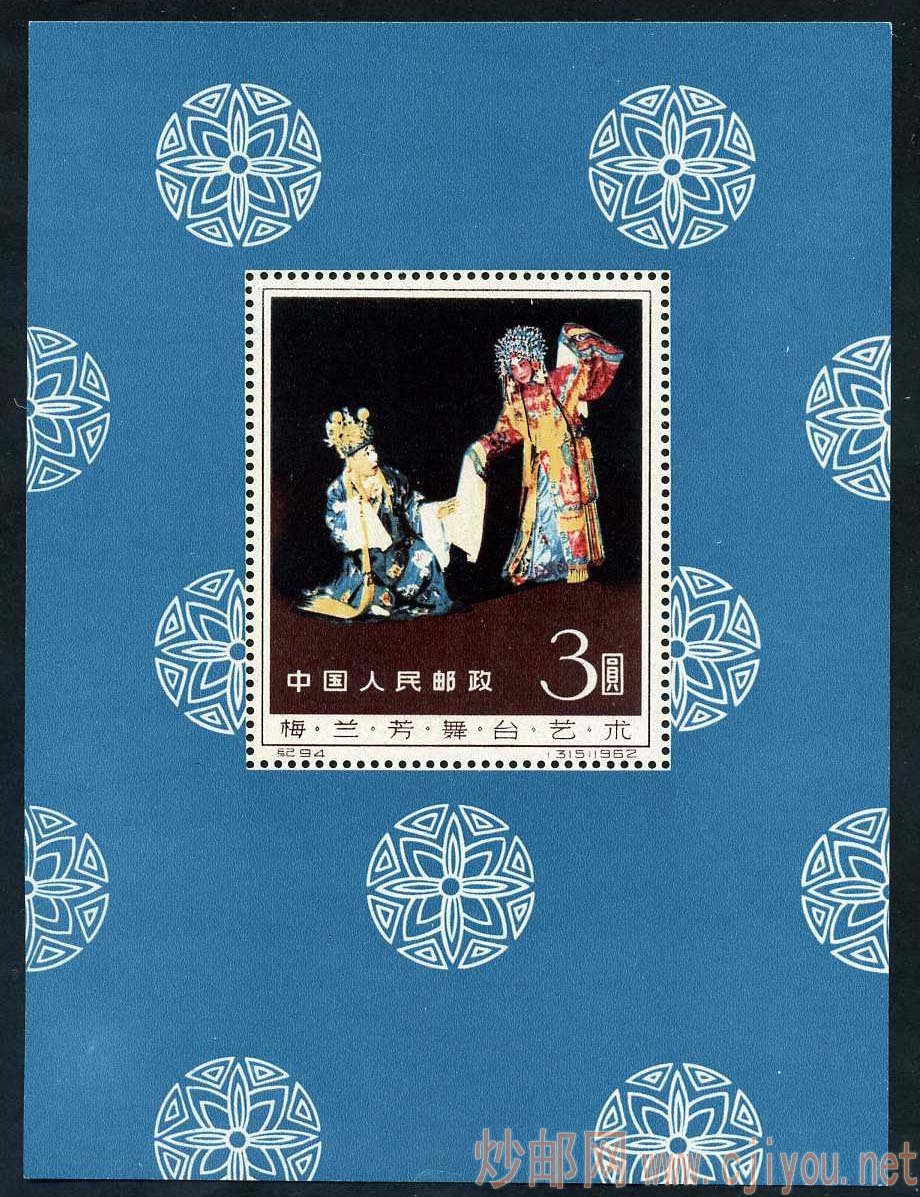 第三当然说是梅兰芳小型张,梅兰芳小型张的发行量很小,2007版目录上写的是2万套,是新中国小型张发行量最小的品种。也由于文革的原因,存世量更小,可能只有几千张,所以梅兰芳小型张的价格长期是新中国小型张中最贵的。拥有一张梅兰芳小型张可能是很多集邮爱好者共同的梦想。梅兰芳小型张的收藏难点在与:1.梅兰芳小型张的印刷质量不好,正面的蓝底极容易掉色。所以市场上很多梅兰芳小型张都补过颜色。2.梅兰芳小型张的印刷质量不好,绝大部分正面的蓝底下方常常会出现深蓝色的条纹,据说这现阶段也是区别真假梅兰芳小型张的一条依据。3.梅兰芳小型张的纸张质量不好,很容易产生折印和镊子印,大部分正面的蓝底上也常见到镊子印。完全没有折印和镊子印的梅兰芳小型张我还没有见到过。4.梅兰芳小型张是中期的精糊胶,比较厚,不容易发干但容易发黄。所以也有所谓白胶和黄胶的说法。这一点和金鱼类似。5.梅兰芳小型张由于非常容易发黄,所以不法分子想办法用药水洗取黄胶,再上2胶的极多。市场上白胶不黄且是原胶的梅兰芳小型张非常少,如果还没掉色和补色就少上加少。即使有少量折印和镊子印,应该也可以说是全品了。如果还非要找完全没有折印和镊子印的梅兰芳小型张,恐怕真是凤毛麟角了。我觉得收藏全品梅兰芳小型张的难度应该是梅兰芳系列里最大的。梅兰芳小型张价格在18万左右