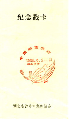 记得那是1983年6月,我到位于荆州的原江汉石油学院出差时,正巧赶上中国邮票展览在沙市举行(图1)。因为有了一些收集邮票的经历和集邮的萌芽,在邮展的最后两天,我每天下午忙完工作,就乘车从荆州赶去沙市的展场,在邮展的大厅里面流连忘返。虽然当时也就是去看看热闹,但内心也涌起阵阵涟漪:“哦,邮票原来可以这样收集啊!真不知道,一枚枚邮票还蕴含着那么多的知识和学问哈。”记得在邮展的最后一天,我还买了一套自己十分珍爱的“奔马”邮票和两本《集邮》杂志。
