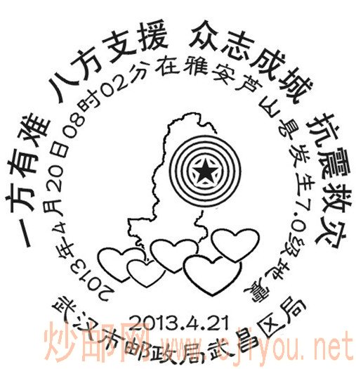 湖北武汉雅安地震邮戳