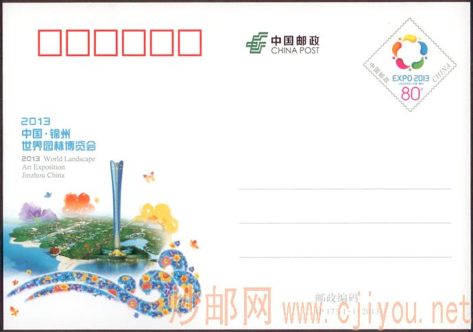 中国邮政定于2013年5月10日发行《2013中国锦州世界园林博览会》纪念邮资明信片1套1枚。详情如下: