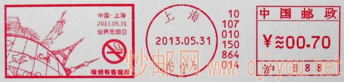 上海邮政于世界无烟日、儿童节分别推出必能宝邮资机戳。其中世界无烟日邮资机戳分为有齿和无齿两种花色。儿童节邮资机戳分为有框和无框两种花色。