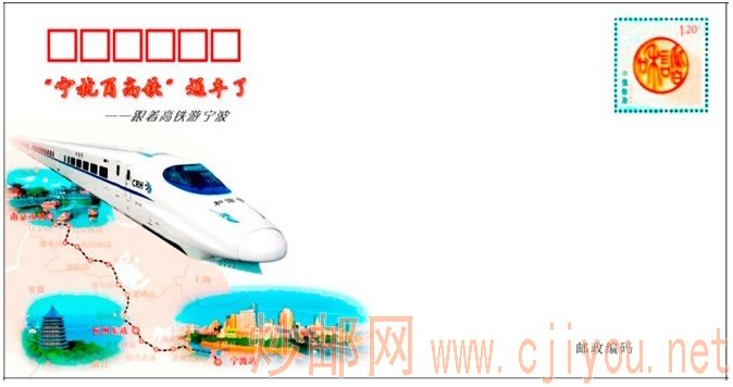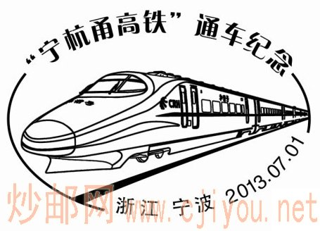 浙江宁波“宁杭甬高铁开通”纪念封、纪念邮戳 日期:2013-06-27 来源:宁波集邮 纪念邮戳 纪念封 宁杭甬高铁将正式全线开通,宁波也将迎来“高铁时代”,宁波邮票公司为庆祝这一民生大事,特于通车当天发行纪念封一枚,启用纪念邮戳供广大集邮爱好者收藏。