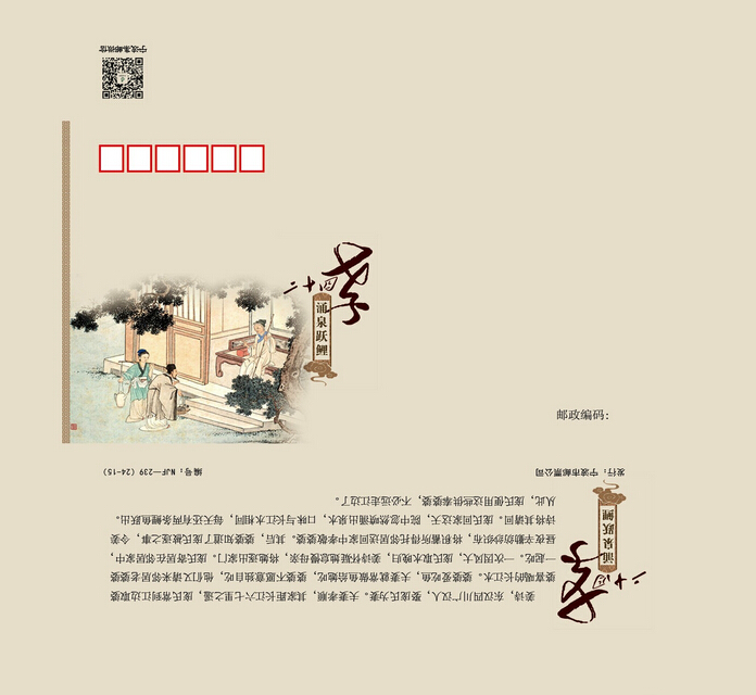 宁波市邮票公司定于2014年7月26日发行《二十四孝》纪念封三枚,分别为24-13(扇枕温衾)、24-14(拾葚异器)、24-15(涌泉跃鲤)。首发当天我们还将启动《南塘老街》风景戳一枚