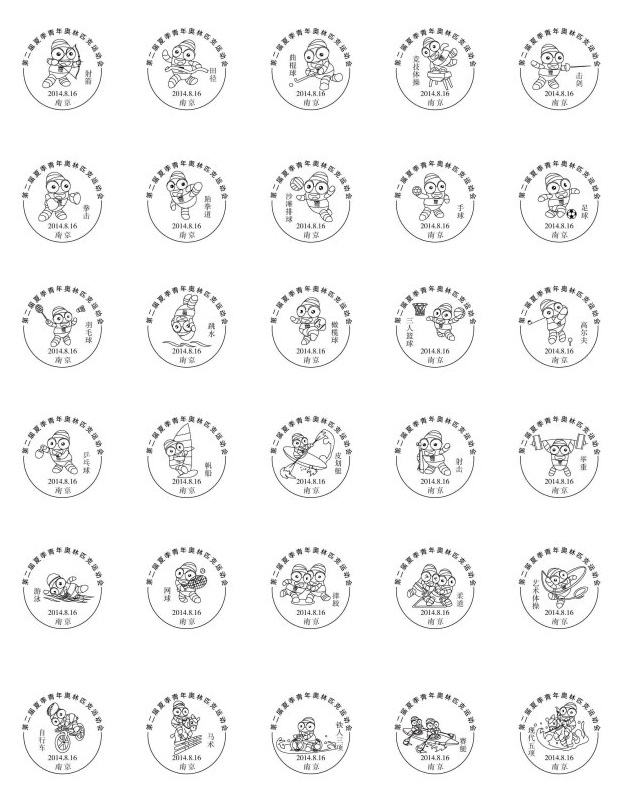 南京青奥会将启用30枚运动项目邮戳和16个场馆邮戳 日期:2014-08-04 来源:马踏飞燕片 2014南京青奥会离我们越来越近了,体育集邮爱好者期待南京青奥会提供我们丰富多彩的收藏品,现在知道除已经发行的青奥会邮资片,封外,国家邮政将在8月16日开幕日发行纪念邮票一枚。南京邮政局将启用30枚运动项目邮戳和16个场馆邮戳。