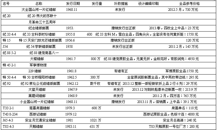 发行量(有组别之分的为各组之和)邮政一般不公布,不了了之,大多是学者、爱好者统计数据。