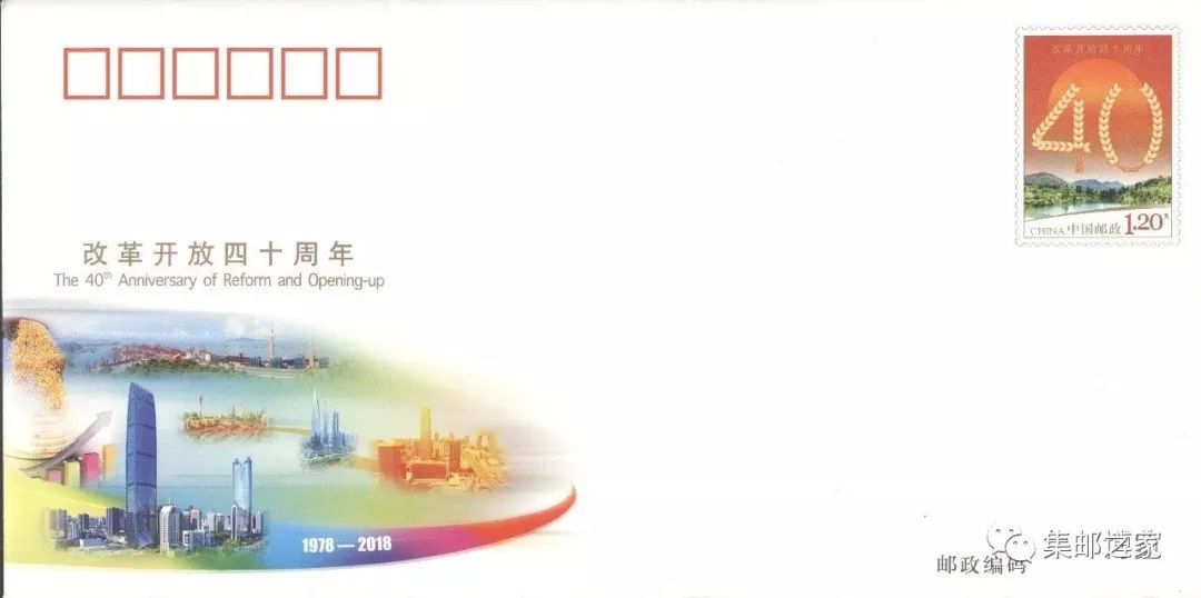 中国邮政定于2018年6月24日发行《改革开放四十周年》纪念邮资信封1套1枚。详情如下:
