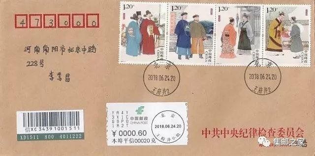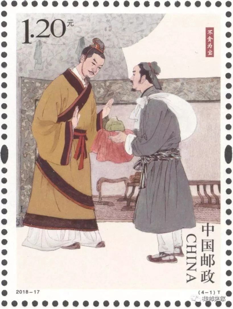 中国邮政于6月24日发行《清正廉洁》(一)邮票发行,这次邮政选取了古代四则经典廉洁的典故。