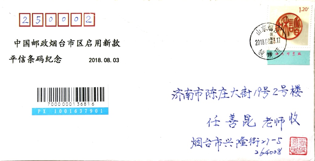 山东省烟台市8月3日开始使用新版本手写平信签条,签条样式与8月1日北京市启用的样式一致。据说山东省绿色的平信签条陆续都将更换此蓝色签条。