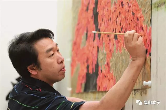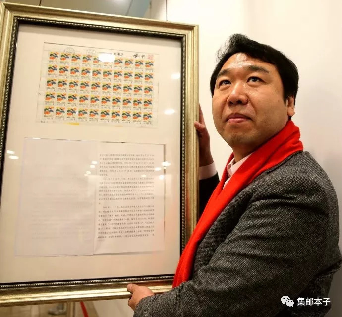 刘中与他创作的《我爱长城》邮票 王宏伟摄影