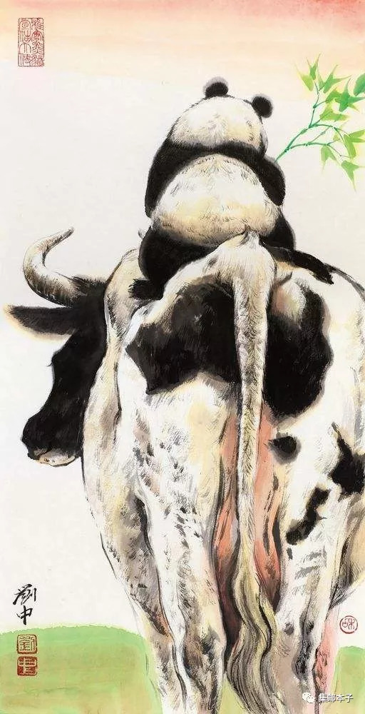 今年45岁的刘中,自幼受家学熏陶,4岁习画,少年时代屡获全国绘画比赛大奖。幼时贴近自然的生活见闻让他对动物情有独钟,大到狮子、斑马,小到鸽子、家猫;珍稀如熊猫、犀牛,常见如奶牛、山羊,在他笔下,都化作有感情,有性格的精灵。而第一次看到熊猫时的新鲜和惊奇,至今仍在刘中心里萦绕不去,从此熊猫就成了他的“常驻”题材。此后留学法国,使刘中开始深入思考中国画的现状,理性审视东西方美学观念的异同,力求以中国特色的艺术语言和风格体现博大宽广的生命情感和文化的终极关怀。