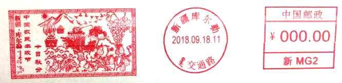 新疆库尔勒9月23日启用中国农民丰收节今日秋分邮资机戳