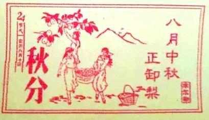 新疆库尔勒9月23日二十四节气-八月中秋正卸梨-秋分邮资机戳