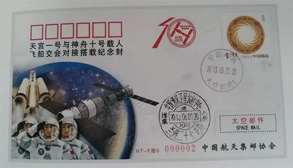 HT-F搭6天宫一号与神舟十号载人飞船交会对接搭载纪念封,搭载量20枚。搭载纪念封于2013年6月1日在中国酒泉卫星发射中心被装入神舟十号载人飞船返回舱。6月11日,神舟十号载人飞船在酒泉卫星发射中心由长征二号F运载火箭发射升空,并与在轨运行的天宫一号目标飞行器进行空间交会对接。经过15天飞行,神舟十号飞船返回舱于6月26日在内蒙古自治区中部主着陆场预定区域回收着陆,6月27日,返回舱被运至中国空间技术研究院。6月28日,在中国空间技术研究院进行返回舱开舱,将搭载物从返回舱中取出。