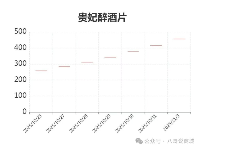 贵妃醉酒片 涨幅 10% 开盘价456.01元 收盘价456.01元 量少精品