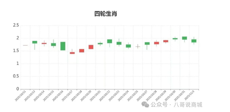 四轮生肖邮票(单枚),开盘价2.195元,最高价2.05元,最低价1.76元,收盘价1.84元跌5.64%