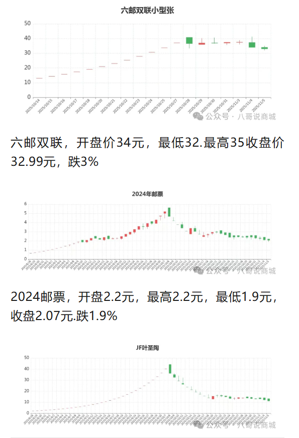 2024邮票,开盘2.2元,最高2.2元,最低1.9元,收盘2.07元.跌1.9%