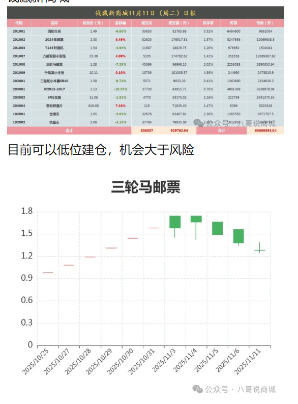 为了大力推广本公众号,凡是转发这个公众号文章到自己的朋友圈+转发(到邮币卡,收藏类,投资类微信群人数有300人以上的一个)并截图发给本人,免费奖励钱藏线上三轮马邮票二枚,总数500枚。