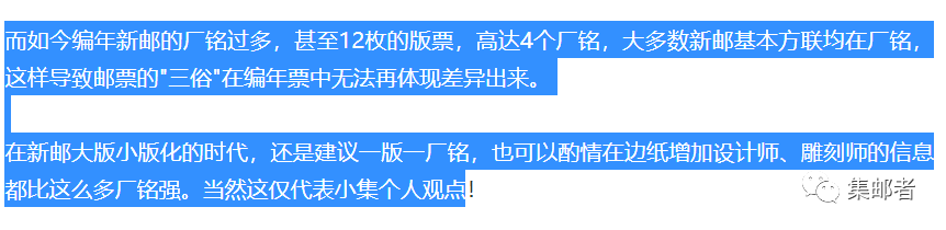 小集在5月3日《聊一聊:新邮大版12枚邮票,厂名就达3-4个?有必要吗?》,而这次货郎图的大版设计改版了,终于不再是四个厂铭了!