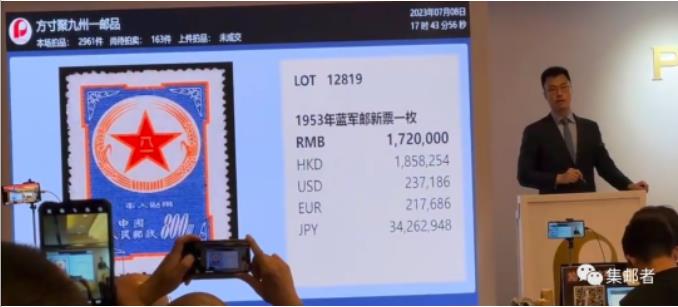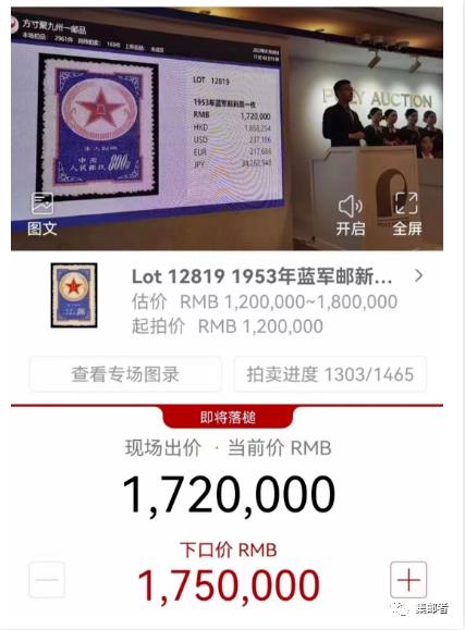 集邮者讯(JiCang.vip),刚刚保利春拍《蓝军邮》新一枚,拍出172万人民币,加佣金197.8万: