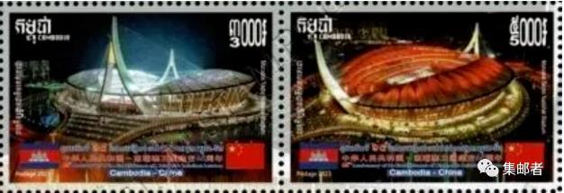 为纪念与中国建交65周年,日前柬埔寨邮政发行“中柬建交65周年”纪念邮票一套2枚及小全张一枚。邮票主图为柬埔寨国家体育场夜景(照片),该体育场由中国援建,于2021年建成。